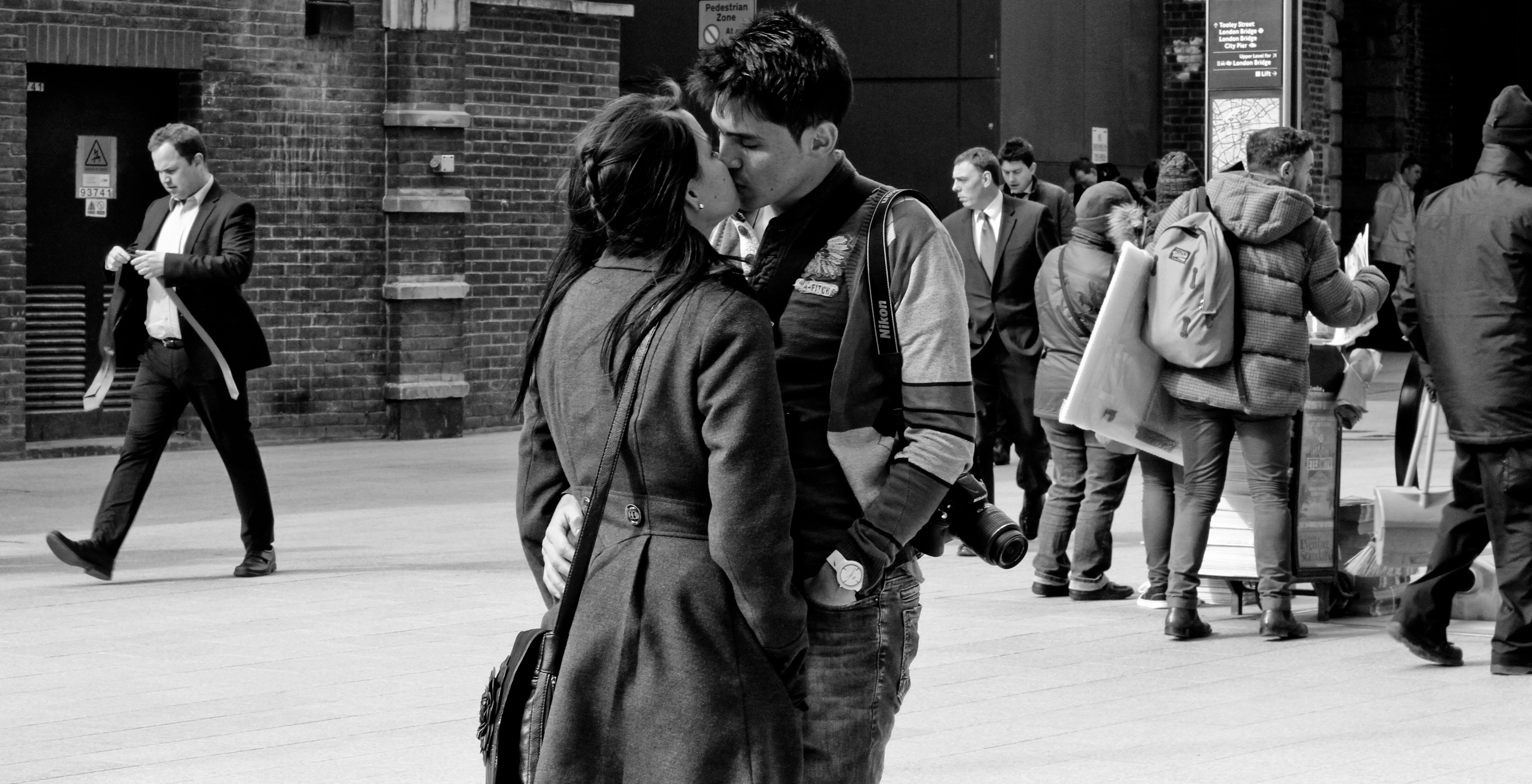 London Bridge escalator faces, a dog in a rush and random snogging.